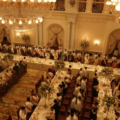 ถวายพระกระยาหารค่ำแด่พระประมุข และพระราชวงศ์ต่างประเทศ ณ พระที่นั่งบรมราชสถิตยมโหฬาร ได้รับใบอนุญาตภายใต้ ให้เผยแพร่-ดัดแปลง-โดยต้องระบุที่มาแต่ห้ามใช้เพื่อการค้า 3.0 Thailand.