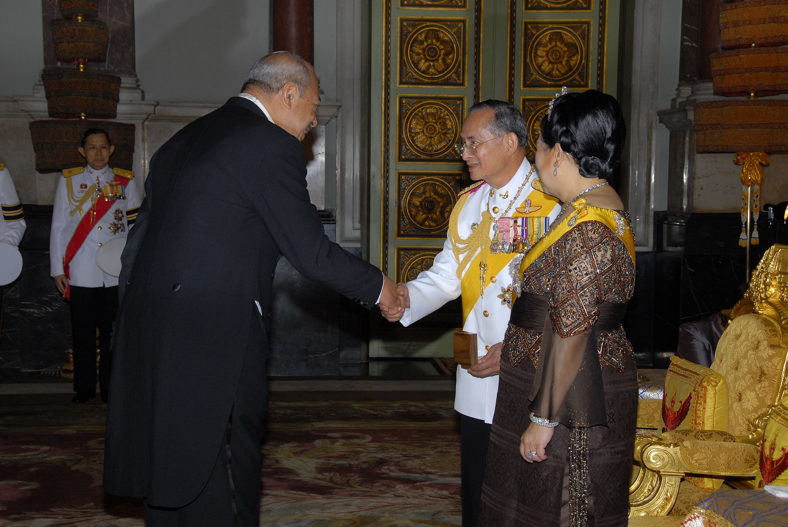 ถวายพระกระยาหารค่ำแด่พระประมุข และพระราชวงศ์ต่างประเทศ ณ พระที่นั่งบรมราชสถิตยมโหฬาร ได้รับใบอนุญาตภายใต้ ให้เผยแพร่-ดัดแปลง-โดยต้องระบุที่มาแต่ห้ามใช้เพื่อการค้า 3.0 Thailand.