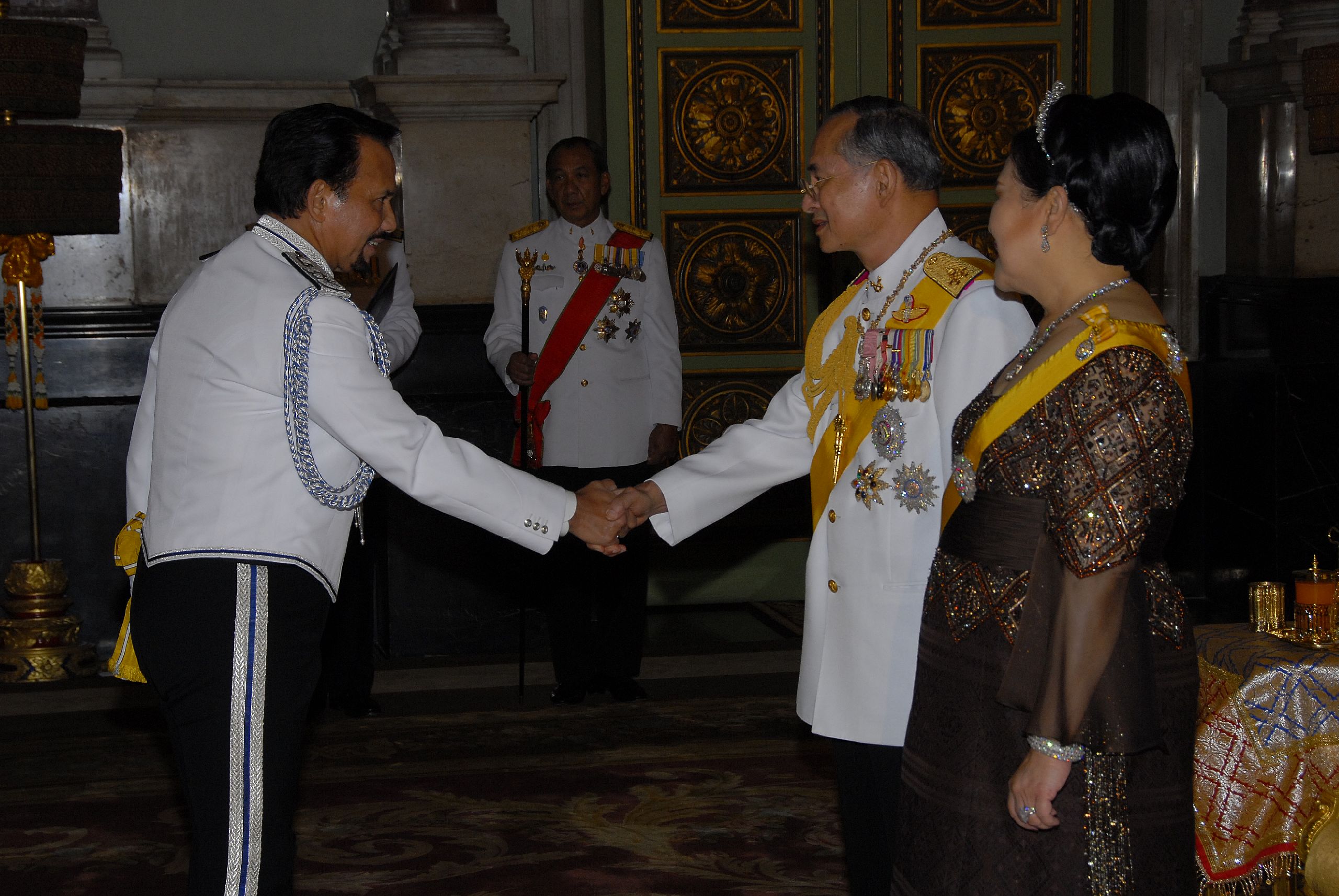 คำอธิบาย : ถวายพระกระยาหารค่ำแด่พระประมุข และพระราชวงศ์ต่างประเทศ ณ พระที่นั่งบรมราชสถิตยมโหฬาร เมื่อวันที่ 13 มิถุนายน 2549 |