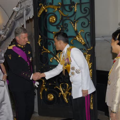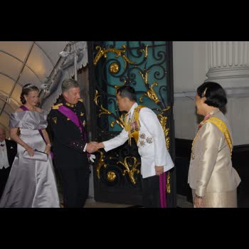| คำอธิบาย : ถวายพระกระยาหารค่ำแด่พระประมุข และพระราชวงศ์ต่างประเทศ ณ พระที่นั่งบรมราชสถิตยมโหฬาร เมื่อวันที่ 13 มิถุนายน 2549 |