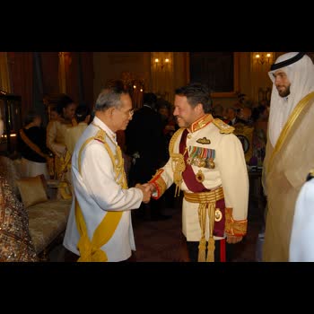 | คำสำคัญ : รัชกาลที่ 9, พระราชพิธีเฉลิมฉลองสิริราชสมบัติครบ 60 ปี, พระราชพิธีฉลองสิริราชสมบัติ, ราชวงศ์จักรี, พระบาทสมเด็จพระเจ้าอยู่หัว, ถวายพระกระยาหารค่ำ, พระบาทสมเด็จพระปรมินทรมหาภูมิพลอดุลยเดช มหิตลาธิเบศรรามาธิบดี จักรีนฤบดินทร สยามินทราธิราช บรมนาถบพิตร, พระมหากษัตริย์แห่งราชอาณาจักรไทย, พระราชพิธี, ถวายพระกระยาหารค่ำแด่พระประมุข และพระราชวงศ์ต่างประเทศ ณ พระที่นั่งบรมราชสถิตยมโหฬาร |