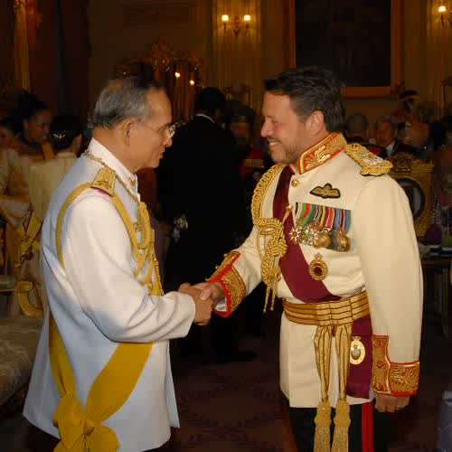 | คำอธิบาย : ถวายพระกระยาหารค่ำแด่พระประมุข และพระราชวงศ์ต่างประเทศ ณ พระที่นั่งบรมราชสถิตยมโหฬาร เมื่อวันที่ 13 มิถุนายน 2549 |