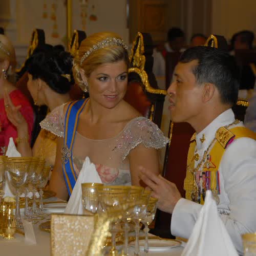 | คำอธิบาย : ถวายพระกระยาหารค่ำแด่พระประมุข และพระราชวงศ์ต่างประเทศ ณ พระที่นั่งบรมราชสถิตยมโหฬาร เมื่อวันที่ 13 มิถุนายน 2549 |