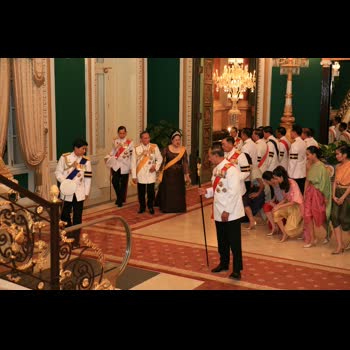 ถวายพระกระยาหารค่ำแด่พระประมุข และพระราชวงศ์ต่างประเทศ ณ พระที่นั่งบรมราชสถิตยมโหฬาร ได้รับใบอนุญาตภายใต้ ให้เผยแพร่-ดัดแปลง-โดยต้องระบุที่มาแต่ห้ามใช้เพื่อการค้า 3.0 Thailand.