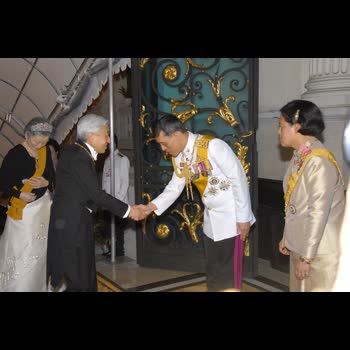 | คำอธิบาย : ถวายพระกระยาหารค่ำแด่พระประมุข และพระราชวงศ์ต่างประเทศ ณ พระที่นั่งบรมราชสถิตยมโหฬาร เมื่อวันที่ 13 มิถุนายน 2549 |