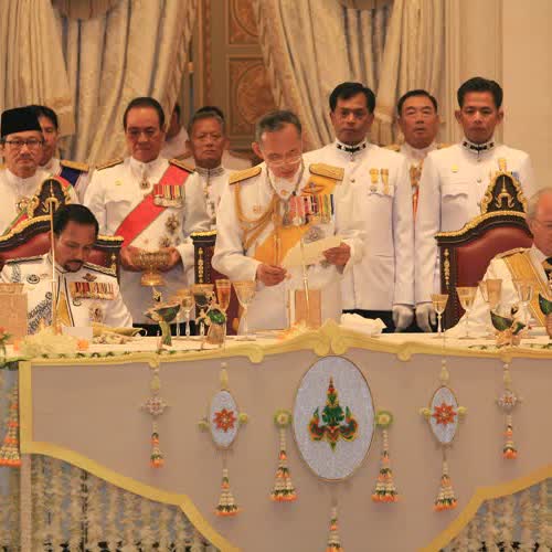 (2559). "ถวายพระกระยาหารค่ำแด่พระประมุข และพระราชวงศ์ต่างประเทศ ณ พระที่นั่งบรมราชสถิตยมโหฬาร".
