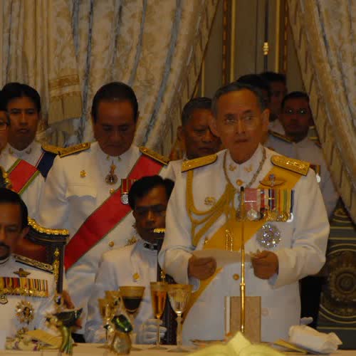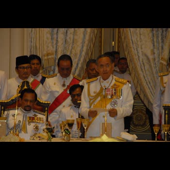 | คำสำคัญ : ราชวงศ์จักรี, พระบาทสมเด็จพระปรมินทรมหาภูมิพลอดุลยเดช มหิตลาธิเบศรรามาธิบดี จักรีนฤบดินทร สยามินทราธิราช บรมนาถบพิตร, พระมหากษัตริย์แห่งราชอาณาจักรไทย, ถวายพระกระยาหารค่ำแด่พระประมุข และพระราชวงศ์ต่างประเทศ ณ พระที่นั่งบรมราชสถิตยมโหฬาร, รัชกาลที่ 9, พระราชพิธี, พระราชพิธีฉลองสิริราชสมบัติ, พระราชพิธีเฉลิมฉลองสิริราชสมบัติครบ 60 ปี, ถวายพระกระยาหารค่ำ, พระบาทสมเด็จพระเจ้าอยู่หัว |
