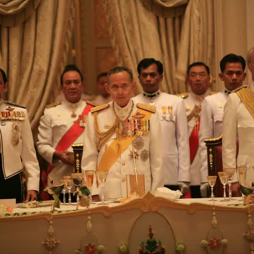 | คำอธิบาย : ถวายพระกระยาหารค่ำแด่พระประมุข และพระราชวงศ์ต่างประเทศ ณ พระที่นั่งบรมราชสถิตยมโหฬาร เมื่อวันที่ 13 มิถุนายน 2549 |