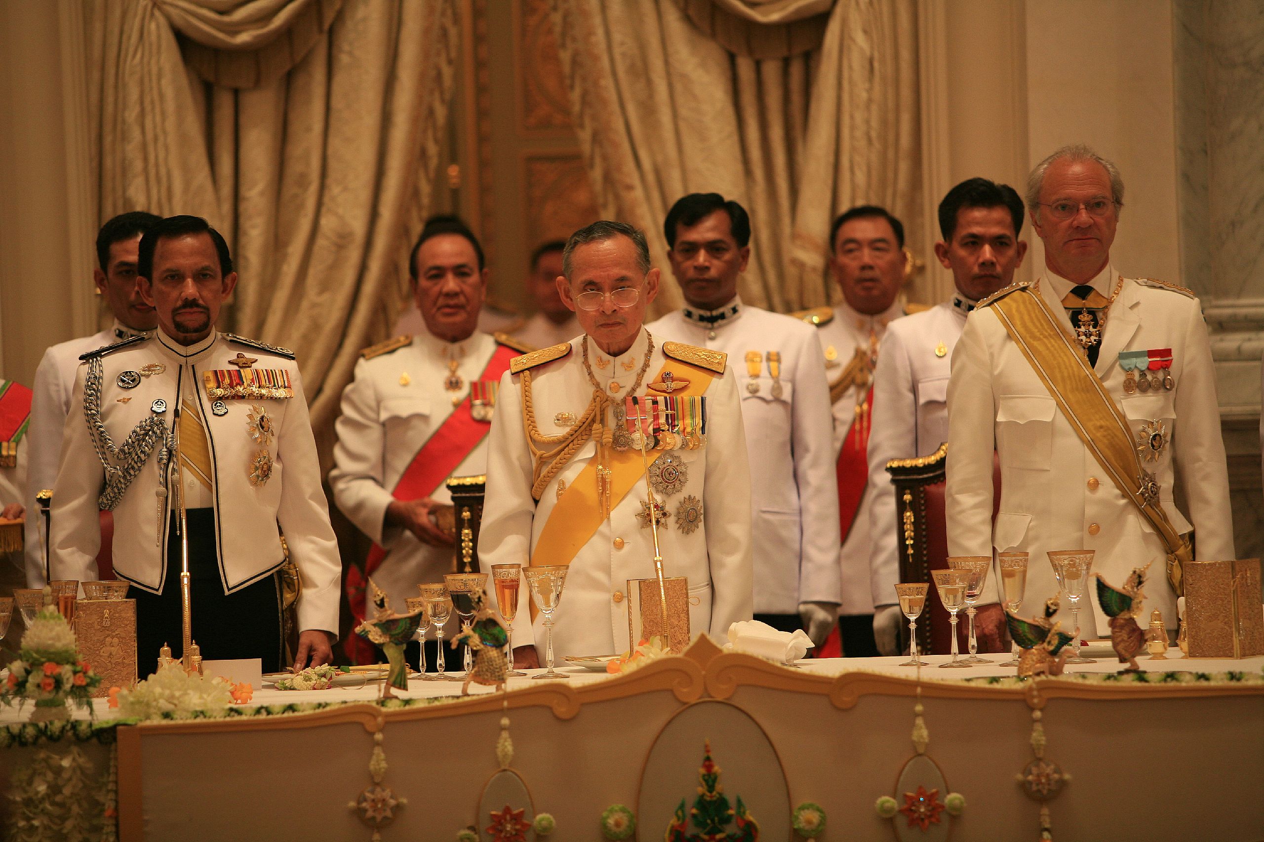 ถวายพระกระยาหารค่ำแด่พระประมุข และพระราชวงศ์ต่างประเทศ ณ พระที่นั่งบรมราชสถิตยมโหฬาร ได้รับใบอนุญาตภายใต้ ให้เผยแพร่-ดัดแปลง-โดยต้องระบุที่มาแต่ห้ามใช้เพื่อการค้า 3.0 Thailand.