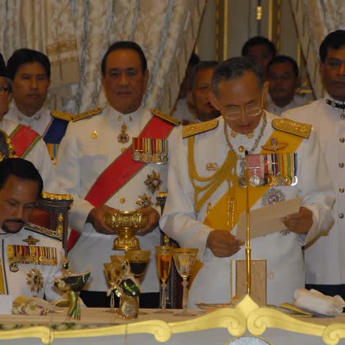 | คำอธิบาย : ถวายพระกระยาหารค่ำแด่พระประมุข และพระราชวงศ์ต่างประเทศ ณ พระที่นั่งบรมราชสถิตยมโหฬาร เมื่อวันที่ 13 มิถุนายน 2549 |
