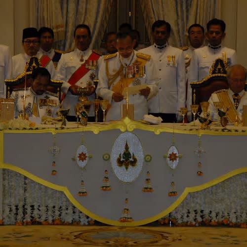 "ถวายพระกระยาหารค่ำแด่พระประมุข และพระราชวงศ์ต่างประเทศ ณ พระที่นั่งบรมราชสถิตยมโหฬาร".