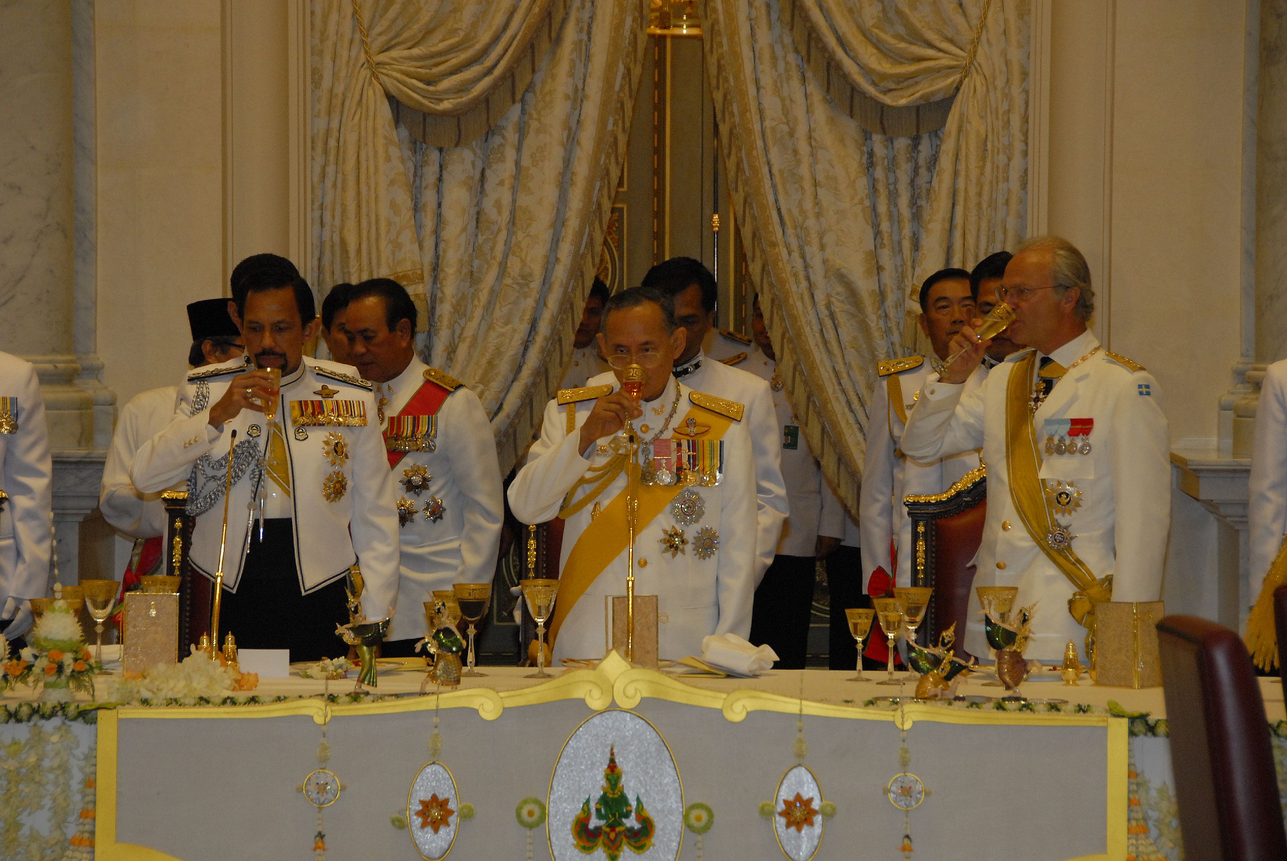 ถวายพระกระยาหารค่ำแด่พระประมุข และพระราชวงศ์ต่างประเทศ ณ พระที่นั่งบรมราชสถิตยมโหฬาร ได้รับใบอนุญาตภายใต้ ให้เผยแพร่-ดัดแปลง-โดยต้องระบุที่มาแต่ห้ามใช้เพื่อการค้า 3.0 Thailand.