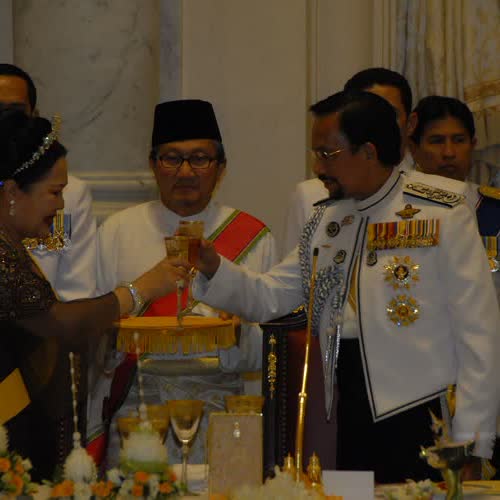 คำอธิบาย : ถวายพระกระยาหารค่ำแด่พระประมุข และพระราชวงศ์ต่างประเทศ ณ พระที่นั่งบรมราชสถิตยมโหฬาร เมื่อวันที่ 13 มิถุนายน 2549 |