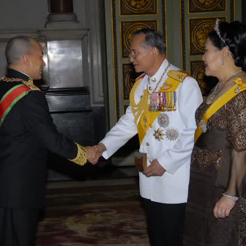 | คำอธิบาย : ถวายพระกระยาหารค่ำแด่พระประมุข และพระราชวงศ์ต่างประเทศ ณ พระที่นั่งบรมราชสถิตยมโหฬาร เมื่อวันที่ 13 มิถุนายน 2549 |
