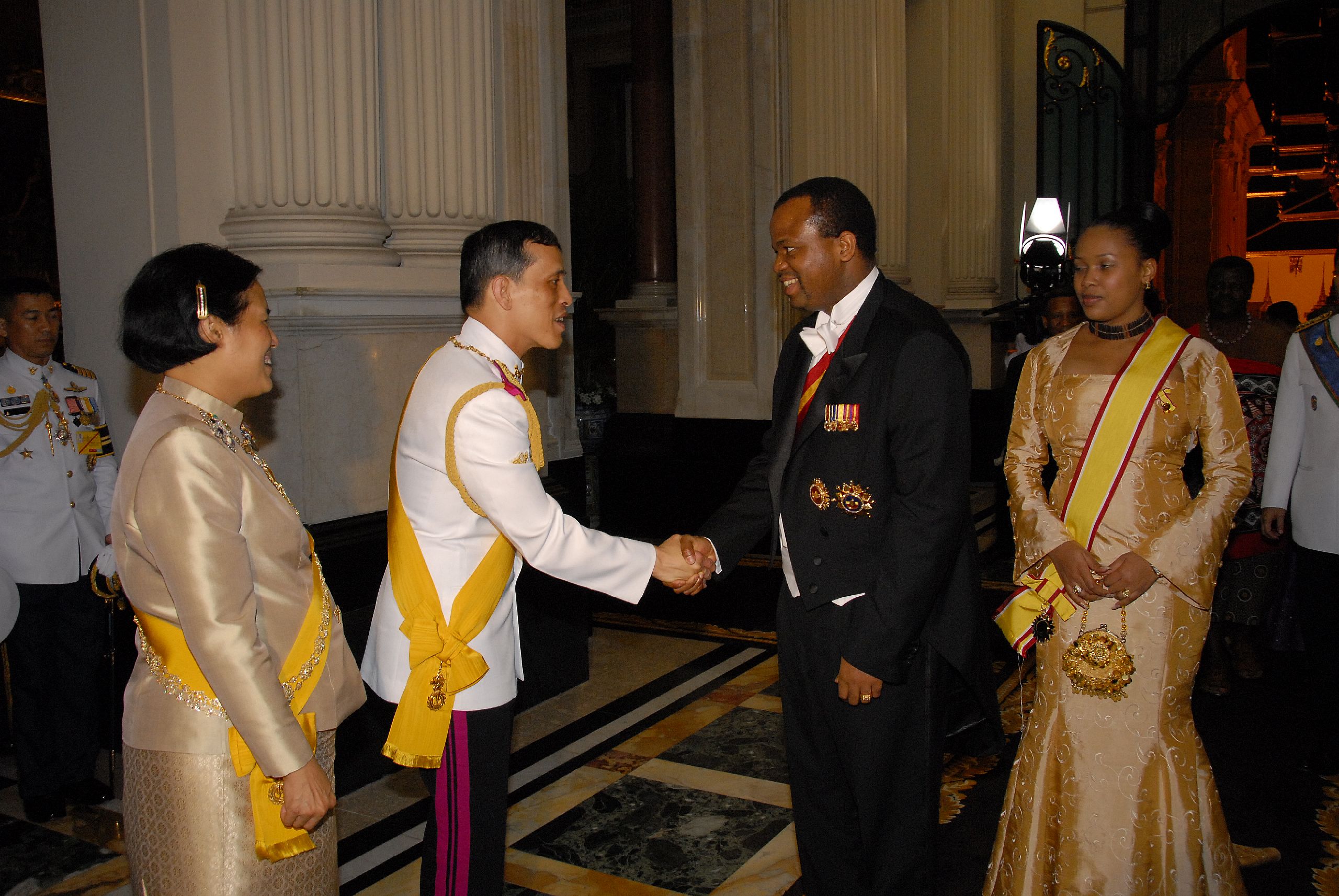 "ถวายพระกระยาหารค่ำแด่พระประมุข และพระราชวงศ์ต่างประเทศ ณ พระที่นั่งบรมราชสถิตยมโหฬาร".