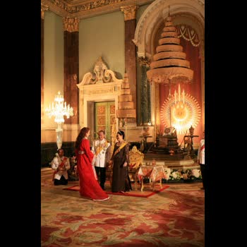 คำอธิบาย : ถวายพระกระยาหารค่ำแด่พระประมุข และพระราชวงศ์ต่างประเทศ ณ พระที่นั่งบรมราชสถิตยมโหฬาร เมื่อวันที่ 13 มิถุนายน 2549 |