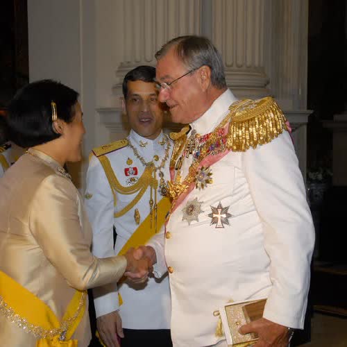 คำอธิบาย : ถวายพระกระยาหารค่ำแด่พระประมุข และพระราชวงศ์ต่างประเทศ ณ พระที่นั่งบรมราชสถิตยมโหฬาร เมื่อวันที่ 13 มิถุนายน 2549 |