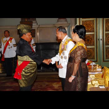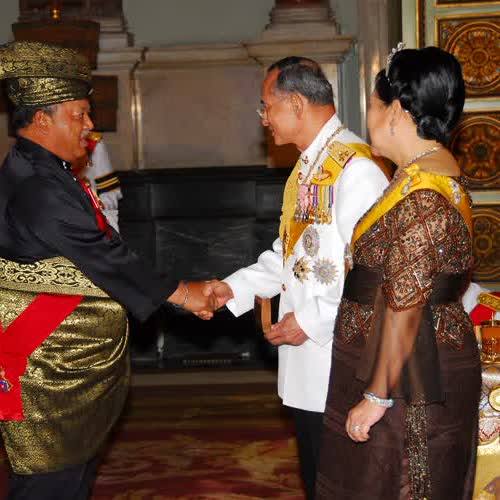 คำอธิบาย : ถวายพระกระยาหารค่ำแด่พระประมุข และพระราชวงศ์ต่างประเทศ ณ พระที่นั่งบรมราชสถิตยมโหฬาร เมื่อวันที่ 13 มิถุนายน 2549 |