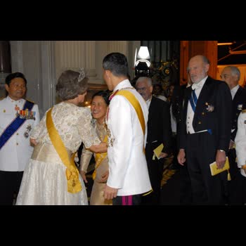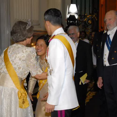คำอธิบาย : ถวายพระกระยาหารค่ำแด่พระประมุข และพระราชวงศ์ต่างประเทศ ณ พระที่นั่งบรมราชสถิตยมโหฬาร เมื่อวันที่ 13 มิถุนายน 2549 |