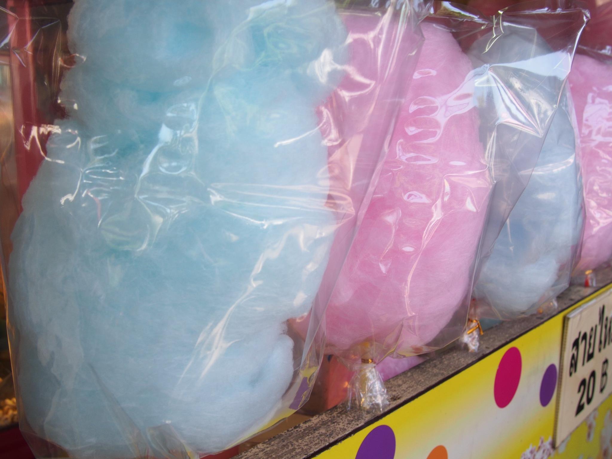 | คำอธิบาย : ขนมสายไหม เป็นขนมชนิดหนึ่ง มีลักษณะเป็นน้ำตาลเส้นบางเบาถูกปั่นขึ้นมา เป็นลักษณะคล้ายก้อนเมฆ อาจมีหลายสีตามแต่จะแต่งแต้ม ทำออกมาในรูปของก้อนเมฆเพื่อเป็นต้วแทนความฝันและจินตนาการตามความเชื่อของชาวตะวันตก จึงเป็นเหมือนกับขนมที่อยู่ในเทพนิยายโดยมีการนำมาเป็นขนมตัวแทนของสวนสนุกหรือละครสัตว์ เนื่องจากถูกผลิตขึ้นมาให้กลายเป็นขนมที่อัศจรรย์ได้อย่างง่ายดาย |