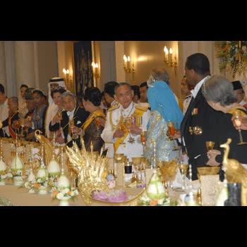 | คำสำคัญ : พระบาทสมเด็จพระปรมินทรมหาภูมิพลอดุลยเดช มหิตลาธิเบศรรามาธิบดี จักรีนฤบดินทร สยามินทราธิราช บรมนาถบพิตร, ถวายพระกระยาหารค่ำแด่พระประมุข และพระราชวงศ์ต่างประเทศ ณ พระที่นั่งบรมราชสถิตยมโหฬาร, ราชวงศ์จักรี, พระบาทสมเด็จพระเจ้าอยู่หัว, ถวายพระกระยาหารค่ำ, พระมหากษัตริย์แห่งราชอาณาจักรไทย, รัชกาลที่ 9, พระราชพิธี, พระราชพิธีเฉลิมฉลองสิริราชสมบัติครบ 60 ปี, พระราชพิธีฉลองสิริราชสมบัติ |