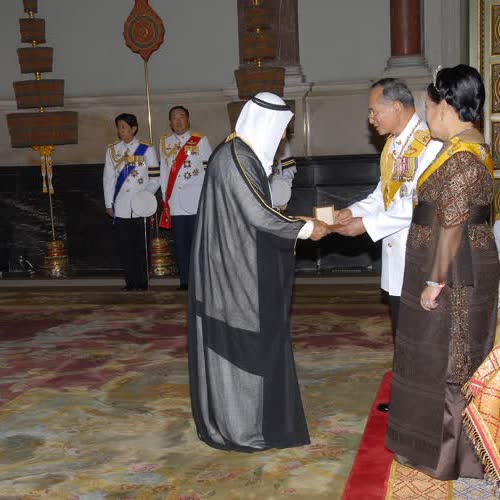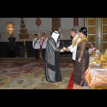 | คำอธิบาย : ถวายพระกระยาหารค่ำแด่พระประมุข และพระราชวงศ์ต่างประเทศ ณ พระที่นั่งบรมราชสถิตยมโหฬาร เมื่อวันที่ 13 มิถุนายน 2549 |