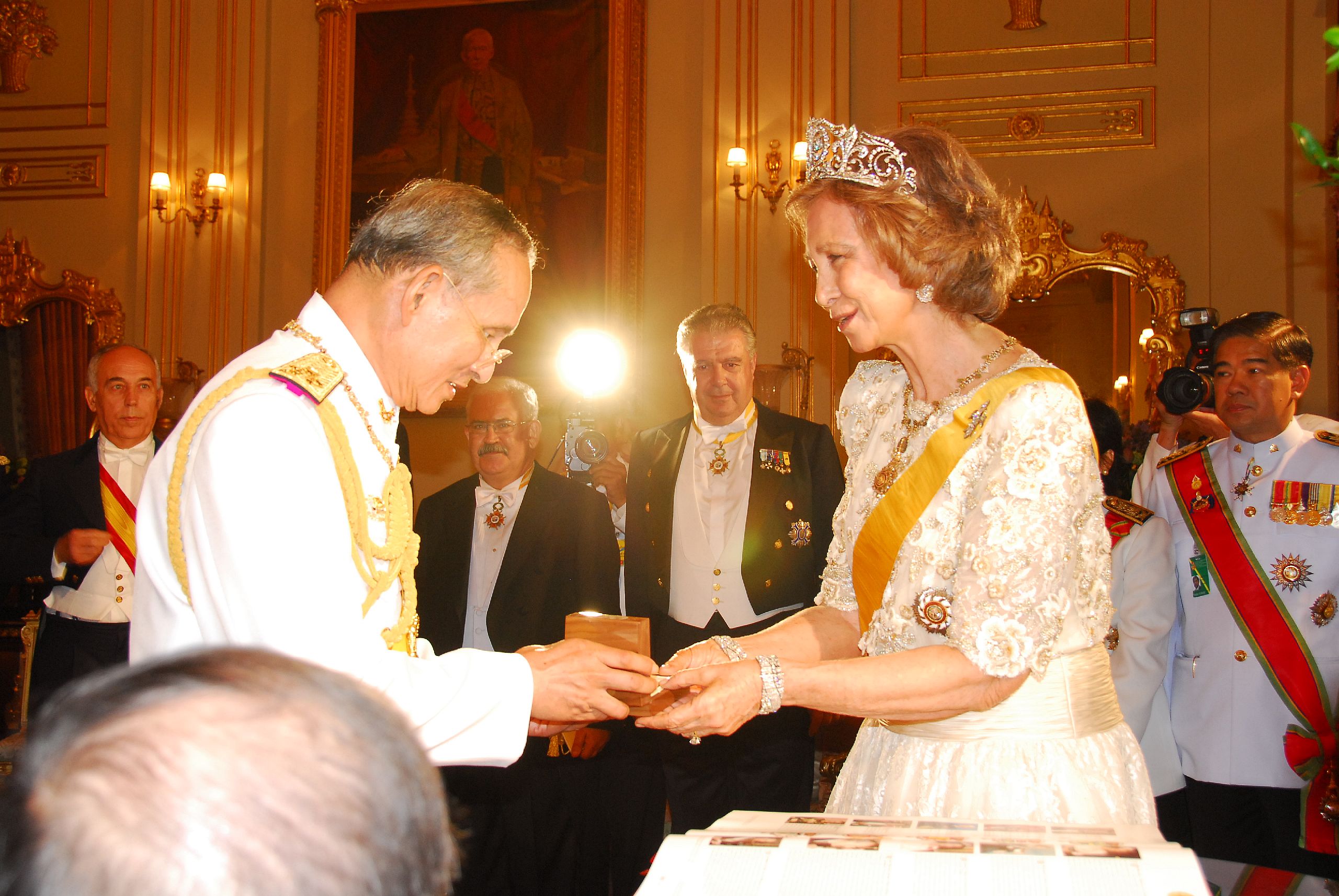 | คำสำคัญ : พระราชพิธี, พระราชพิธีเฉลิมฉลองสิริราชสมบัติครบ 60 ปี, ราชวงศ์จักรี, พระมหากษัตริย์แห่งราชอาณาจักรไทย, พระบาทสมเด็จพระปรมินทรมหาภูมิพลอดุลยเดช มหิตลาธิเบศรรามาธิบดี จักรีนฤบดินทร สยามินทราธิราช บรมนาถบพิตร, ถวายพระกระยาหารค่ำแด่พระประมุข และพระราชวงศ์ต่างประเทศ ณ พระที่นั่งบรมราชสถิตยมโหฬาร, รัชกาลที่ 9, พระราชพิธีฉลองสิริราชสมบัติ, พระบาทสมเด็จพระเจ้าอยู่หัว, ถวายพระกระยาหารค่ำ |