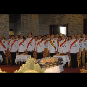 | คำอธิบาย : วันที่ 5 ธันวาคม 2552 เวลา 11.14 น. พระบาทสมเด็จพระเจ้าอยู่หัว ประทับเหนือพระที่นั่งพุดตานกาญจนสิงหาสน์ บนพระราชบัลลังก์ภายใต้นพปฎลมหาเศวตฉัตร เสด็จออกมหาสมาคม สมเด็จพระนางเจ้าฯ พระบรมราชินีนาถ พระบรมวงศ์และข้าราชการ เฝ้าทูลละอองธุลีพระบาท เนื่องในพระราชพิธีเฉลิมพระชนมพรรษา ณ พระที่นั่งอมรินทรวินิจฉัย ในพระบรมมหาราชวัง |