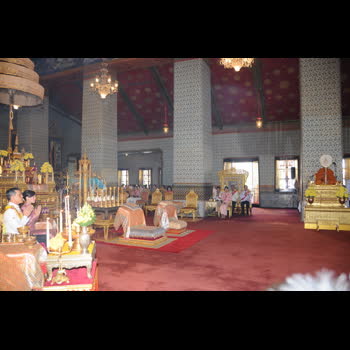 | คำอธิบาย : วันที่ 5 ธันวาคม 2552 เวลา 11.14 น. พระบาทสมเด็จพระเจ้าอยู่หัว ประทับเหนือพระที่นั่งพุดตานกาญจนสิงหาสน์ บนพระราชบัลลังก์ภายใต้นพปฎลมหาเศวตฉัตร เสด็จออกมหาสมาคม สมเด็จพระนางเจ้าฯ พระบรมราชินีนาถ พระบรมวงศ์และข้าราชการ เฝ้าทูลละอองธุลีพระบาท เนื่องในพระราชพิธีเฉลิมพระชนมพรรษา ณ พระที่นั่งอมรินทรวินิจฉัย ในพระบรมมหาราชวัง |