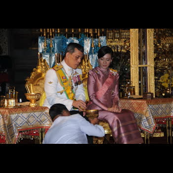 | คำอธิบาย : วันที่ 5 ธันวาคม 2552 เวลา 11.14 น. พระบาทสมเด็จพระเจ้าอยู่หัว ประทับเหนือพระที่นั่งพุดตานกาญจนสิงหาสน์ บนพระราชบัลลังก์ภายใต้นพปฎลมหาเศวตฉัตร เสด็จออกมหาสมาคม สมเด็จพระนางเจ้าฯ พระบรมราชินีนาถ พระบรมวงศ์และข้าราชการ เฝ้าทูลละอองธุลีพระบาท เนื่องในพระราชพิธีเฉลิมพระชนมพรรษา ณ พระที่นั่งอมรินทรวินิจฉัย ในพระบรมมหาราชวัง |