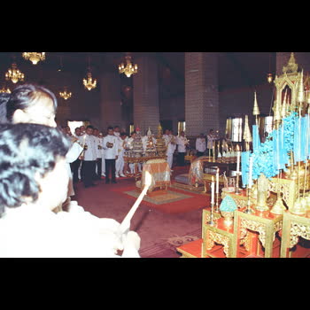 | คำอธิบาย : วันที่ 5 ธันวาคม 2552 เวลา 11.14 น. พระบาทสมเด็จพระเจ้าอยู่หัว ประทับเหนือพระที่นั่งพุดตานกาญจนสิงหาสน์ บนพระราชบัลลังก์ภายใต้นพปฎลมหาเศวตฉัตร เสด็จออกมหาสมาคม สมเด็จพระนางเจ้าฯ พระบรมราชินีนาถ พระบรมวงศ์และข้าราชการ เฝ้าทูลละอองธุลีพระบาท เนื่องในพระราชพิธีเฉลิมพระชนมพรรษา ณ พระที่นั่งอมรินทรวินิจฉัย ในพระบรมมหาราชวัง |