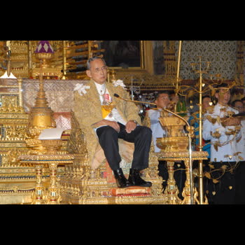 | คำอธิบาย : วันที่ 5 ธันวาคม 2552 เวลา 11.14 น. พระบาทสมเด็จพระเจ้าอยู่หัว ประทับเหนือพระที่นั่งพุดตานกาญจนสิงหาสน์ บนพระราชบัลลังก์ภายใต้นพปฎลมหาเศวตฉัตร เสด็จออกมหาสมาคม สมเด็จพระนางเจ้าฯ พระบรมราชินีนาถ พระบรมวงศ์และข้าราชการ เฝ้าทูลละอองธุลีพระบาท เนื่องในพระราชพิธีเฉลิมพระชนมพรรษา ณ พระที่นั่งอมรินทรวินิจฉัย ในพระบรมมหาราชวัง |
