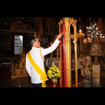 คำอธิบาย : วันที่ 5 ธันวาคม 2552 เวลา 11.14 น. พระบาทสมเด็จพระเจ้าอยู่หัว ประทับเหนือพระที่นั่งพุดตานกาญจนสิงหาสน์ บนพระราชบัลลังก์ภายใต้นพปฎลมหาเศวตฉัตร เสด็จออกมหาสมาคม สมเด็จพระนางเจ้าฯ พระบรมราชินีนาถ พระบรมวงศ์และข้าราชการ เฝ้าทูลละอองธุลีพระบาท เนื่องในพระราชพิธีเฉลิมพระชนมพรรษา ณ พระที่นั่งอมรินทรวินิจฉัย ในพระบรมมหาราชวัง |