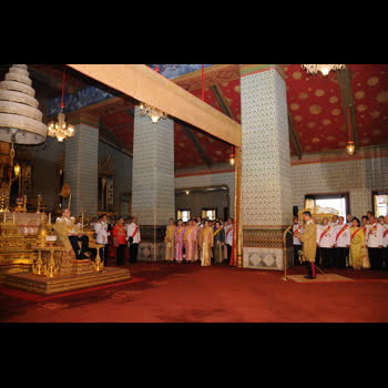 | คำอธิบาย : วันที่ 5 ธันวาคม 2552 เวลา 11.14 น. พระบาทสมเด็จพระเจ้าอยู่หัว ประทับเหนือพระที่นั่งพุดตานกาญจนสิงหาสน์ บนพระราชบัลลังก์ภายใต้นพปฎลมหาเศวตฉัตร เสด็จออกมหาสมาคม สมเด็จพระนางเจ้าฯ พระบรมราชินีนาถ พระบรมวงศ์และข้าราชการ เฝ้าทูลละอองธุลีพระบาท เนื่องในพระราชพิธีเฉลิมพระชนมพรรษา ณ พระที่นั่งอมรินทรวินิจฉัย ในพระบรมมหาราชวัง |