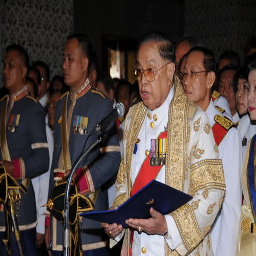 | คำอธิบาย : วันที่ 5 ธันวาคม 2552 เวลา 11.14 น. พระบาทสมเด็จพระเจ้าอยู่หัว ประทับเหนือพระที่นั่งพุดตานกาญจนสิงหาสน์ บนพระราชบัลลังก์ภายใต้นพปฎลมหาเศวตฉัตร เสด็จออกมหาสมาคม สมเด็จพระนางเจ้าฯ พระบรมราชินีนาถ พระบรมวงศ์และข้าราชการ เฝ้าทูลละอองธุลีพระบาท เนื่องในพระราชพิธีเฉลิมพระชนมพรรษา ณ พระที่นั่งอมรินทรวินิจฉัย ในพระบรมมหาราชวัง |