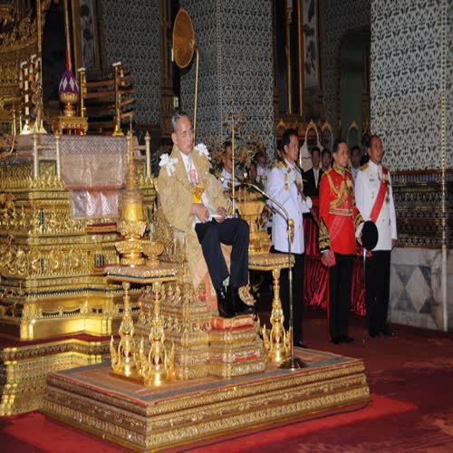 | คำอธิบาย : วันที่ 5 ธันวาคม 2552 เวลา 11.14 น. พระบาทสมเด็จพระเจ้าอยู่หัว ประทับเหนือพระที่นั่งพุดตานกาญจนสิงหาสน์ บนพระราชบัลลังก์ภายใต้นพปฎลมหาเศวตฉัตร เสด็จออกมหาสมาคม สมเด็จพระนางเจ้าฯ พระบรมราชินีนาถ พระบรมวงศ์และข้าราชการ เฝ้าทูลละอองธุลีพระบาท เนื่องในพระราชพิธีเฉลิมพระชนมพรรษา ณ พระที่นั่งอมรินทรวินิจฉัย ในพระบรมมหาราชวัง |