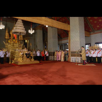 คำอธิบาย : วันที่ 5 ธันวาคม 2552 เวลา 11.14 น. พระบาทสมเด็จพระเจ้าอยู่หัว ประทับเหนือพระที่นั่งพุดตานกาญจนสิงหาสน์ บนพระราชบัลลังก์ภายใต้นพปฎลมหาเศวตฉัตร เสด็จออกมหาสมาคม สมเด็จพระนางเจ้าฯ พระบรมราชินีนาถ พระบรมวงศ์และข้าราชการ เฝ้าทูลละอองธุลีพระบาท เนื่องในพระราชพิธีเฉลิมพระชนมพรรษา ณ พระที่นั่งอมรินทรวินิจฉัย ในพระบรมมหาราชวัง |