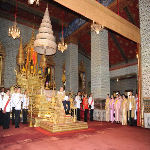 | คำอธิบาย : วันที่ 5 ธันวาคม 2552 เวลา 11.14 น. พระบาทสมเด็จพระเจ้าอยู่หัว ประทับเหนือพระที่นั่งพุดตานกาญจนสิงหาสน์ บนพระราชบัลลังก์ภายใต้นพปฎลมหาเศวตฉัตร เสด็จออกมหาสมาคม สมเด็จพระนางเจ้าฯ พระบรมราชินีนาถ พระบรมวงศ์และข้าราชการ เฝ้าทูลละอองธุลีพระบาท เนื่องในพระราชพิธีเฉลิมพระชนมพรรษา ณ พระที่นั่งอมรินทรวินิจฉัย ในพระบรมมหาราชวัง |