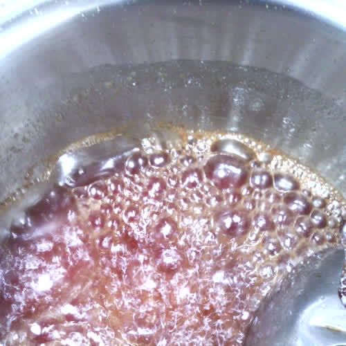 คำอธิบาย : น้ำเชื่อม เกิดจากการนำน้ำตาลและน้ำมาต้มจนเดือดและเคี่ยว หากต้องการให้น้ำเชื่อมมีความเหนียวจะต้องทำการเคี่ยวไปเรื่อยๆ จนกว่าน้ำจะงวดลง |