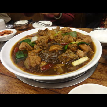 | คำอธิบาย : Andong Jimdak อาหารเกาหลี คล้ายๆ ไก่พะโล้ มีวุ้นเส้นเกาหลีเส้นใหญ่ ใส่พริกเล็กน้อย รสชาติหวาน เค็ม เข้มข้น รับประทานคู่กับข้าวสวยและกิมจิ |