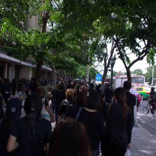 บรรยากาศพสกนิกรไทยเดินทางไปรอรับขบวนเคลื่อนพระบรมศพพระบาทสมเด็จพระเจ้าอยู่หัวในพระบรมโกศ ได้รับใบอนุญาตภายใต้ ให้เผยแพร่-ดัดแปลง-โดยต้องระบุที่มา 3.0 Thailand.