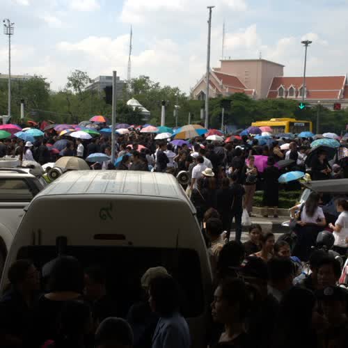 บรรยากาศพสกนิกรไทยเดินทางไปรอรับขบวนเคลื่อนพระบรมศพพระบาทสมเด็จพระเจ้าอยู่หัวในพระบรมโกศ ได้รับใบอนุญาตภายใต้ ให้เผยแพร่-ดัดแปลง-โดยต้องระบุที่มา 3.0 Thailand.