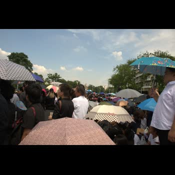 "บรรยากาศพสกนิกรไทยรอรับขบวนเคลื่อนพระบรมศพพระบาทสมเด็จพระเจ้าอยู่หัวในพระบรมโกศ".