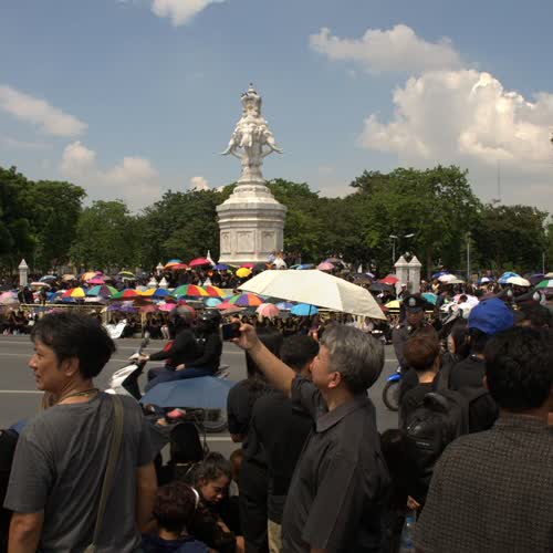 ชื่อเรื่อง : บรรยากาศพสกนิกรไทยรอรับขบวนเคลื่อนพระบรมศพพระบาทสมเด็จพระเจ้าอยู่หัวในพระบรมโกศ |