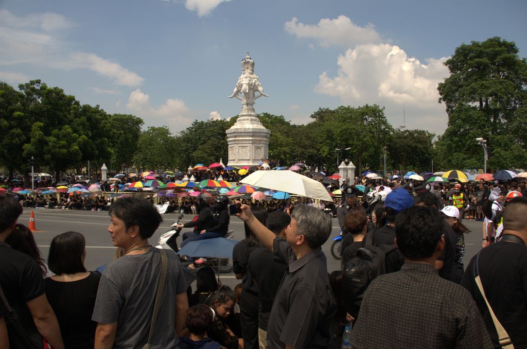 บรรยากาศพสกนิกรไทยรอรับขบวนเคลื่อนพระบรมศพพระบาทสมเด็จพระเจ้าอยู่หัวในพระบรมโกศ