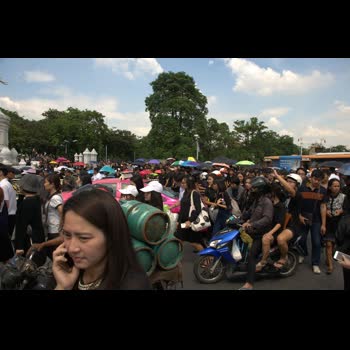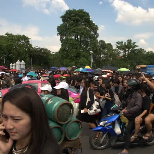 | ชื่อเรื่อง : บรรยากาศพสกนิกรไทยเดินทางไปรอรับขบวนเคลื่อนพระบรมศพพระบาทสมเด็จพระเจ้าอยู่หัวในพระบรมโกศ |