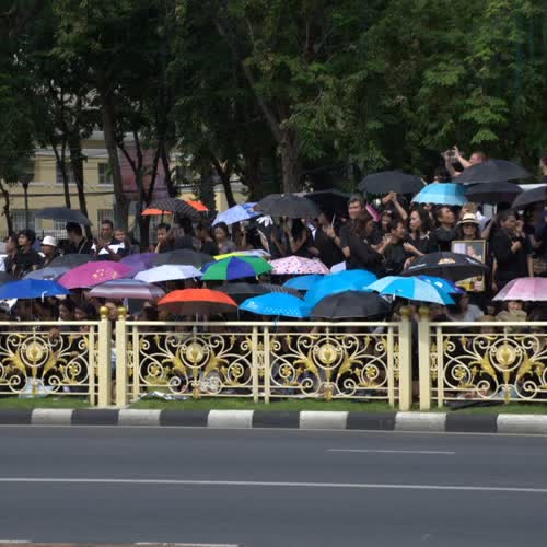 ชื่อเรื่อง : บรรยากาศพสกนิกรไทยรอรับขบวนเคลื่อนพระบรมศพพระบาทสมเด็จพระเจ้าอยู่หัวในพระบรมโกศ |