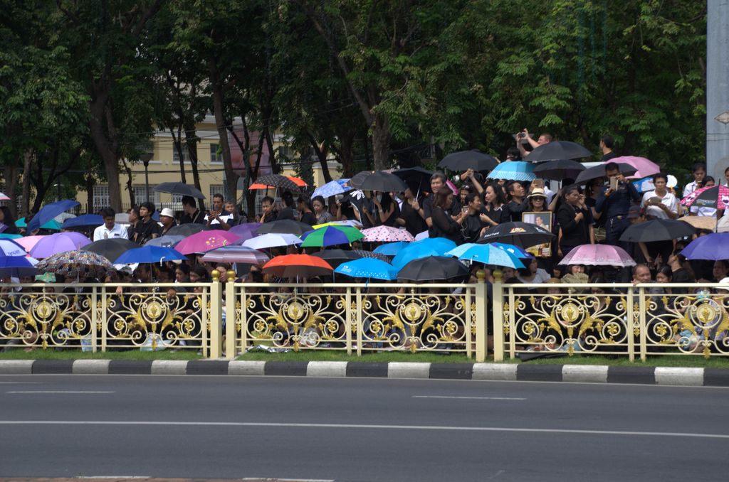 บรรยากาศพสกนิกรไทยรอรับขบวนเคลื่อนพระบรมศพพระบาทสมเด็จพระเจ้าอยู่หัวในพระบรมโกศ