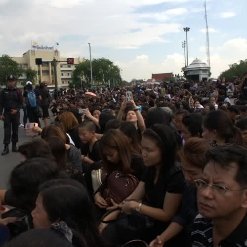บรรยากาศพสกนิกรไทยรอรับขบวนเคลื่อนพระบรมศพพระบาทสมเด็จพระเจ้าอยู่หัวในพระบรมโกศ
