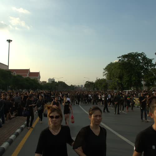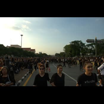| ชื่อเรื่อง : บรรยากาศพสกนิกรไทยเดินทางกลับหลังจากรอรับขบวนเคลื่อนพระบรมศพพระบาทสมเด็จพระเจ้าอยู่หัวในพระบรมโกศ |